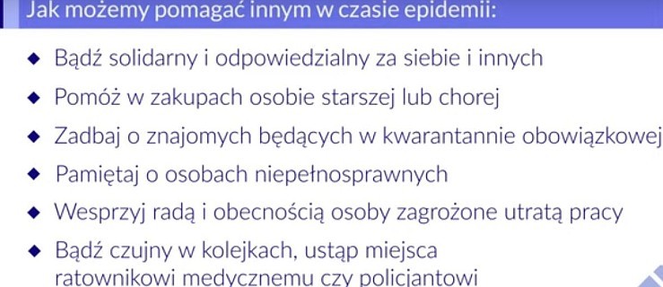 Jak możemy pomagać innym w czasie epidemii? To jest strategia, w której wygrywa jedna i druga strona. I ten, który dostaje naszą pomoc, i my - czujemy się potrzebni, że możemy coś zrobić w tej trudnej sytuacji, że jednak wpływamy na świat wokół nas.