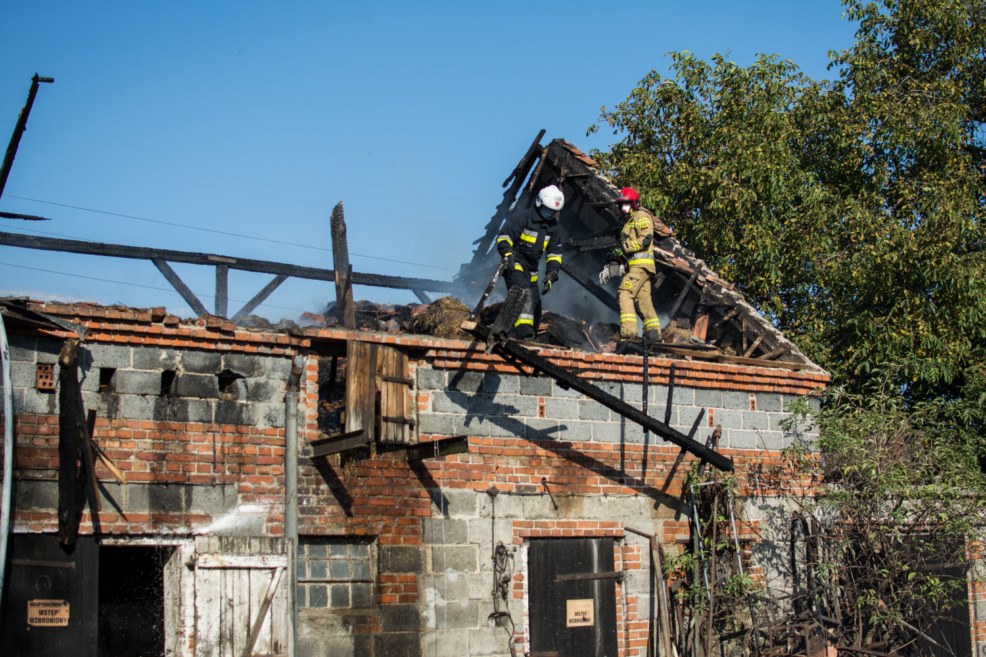 - Konieczna była częściowa rozbiórka konstrukcji dachu, aby dotrzeć do zarzewi ognia. Kierujący działaniami ratunkowymi zdecydował, że należy usunąć zgromadzoną słomę i siano. Ratownicy wynosili nadpaloną słomę na zewnątrz budynku, po czym była dogaszana - dodaje oficer straży.