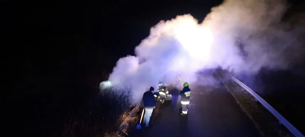 Wczoraj o godzinie 19.26 strażacy otrzymali zgłoszenie do pożaru trawy na poboczu drogi w Kurcewie (gm. Kotlin). Kiedy ratownicy zajechali na miejsce okazało się, że płomienie przeniosły się na porzucone w pobliżu elementy karoseryjne pojazdu. Strażacy ugasili pożar. Na miejscu zdarzenia pracowały dwa zastępy z OSP Kotlin i 1 z OSP Kurcew.