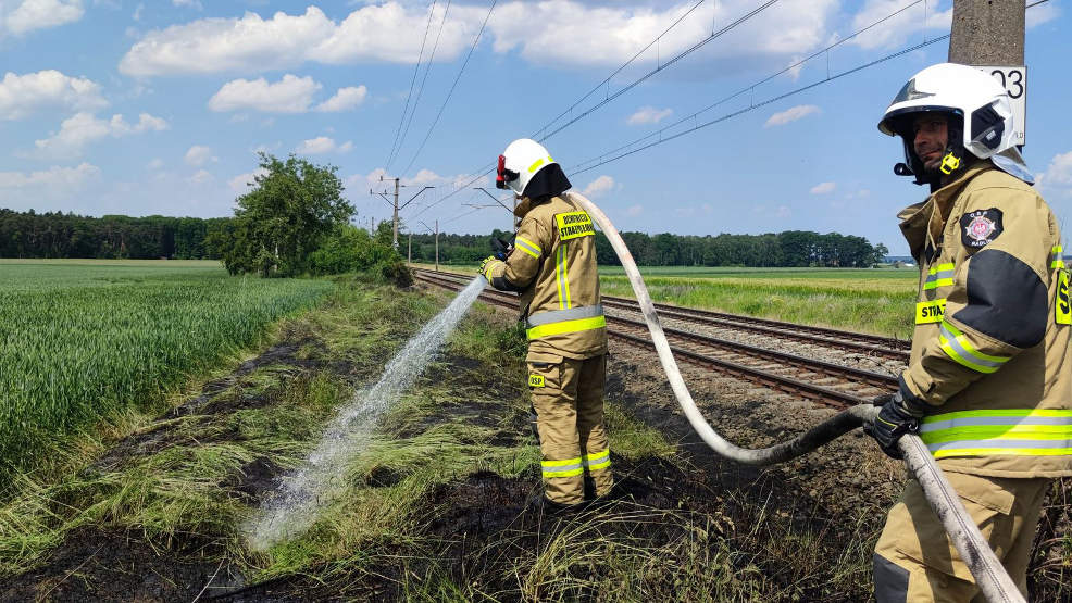 Zastępy z jednostek Ochotniczej Straży Pożarnej z Radlina, Jarocina i Żerkowa gasiły trawę na torowisku przy trasie kolejowej Jarocin-Września, na terenie znajdującym się na pograniczu gmin, w okolicy Stęgoszy. Sytuacja została szybko opanowana. Pożar ugaszono przy pomocy jednego prądu gaśniczego wody. Obecnie strażacy usuwają plamę oleju na ulicy Jarocińskiej w Golinie.