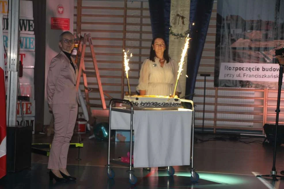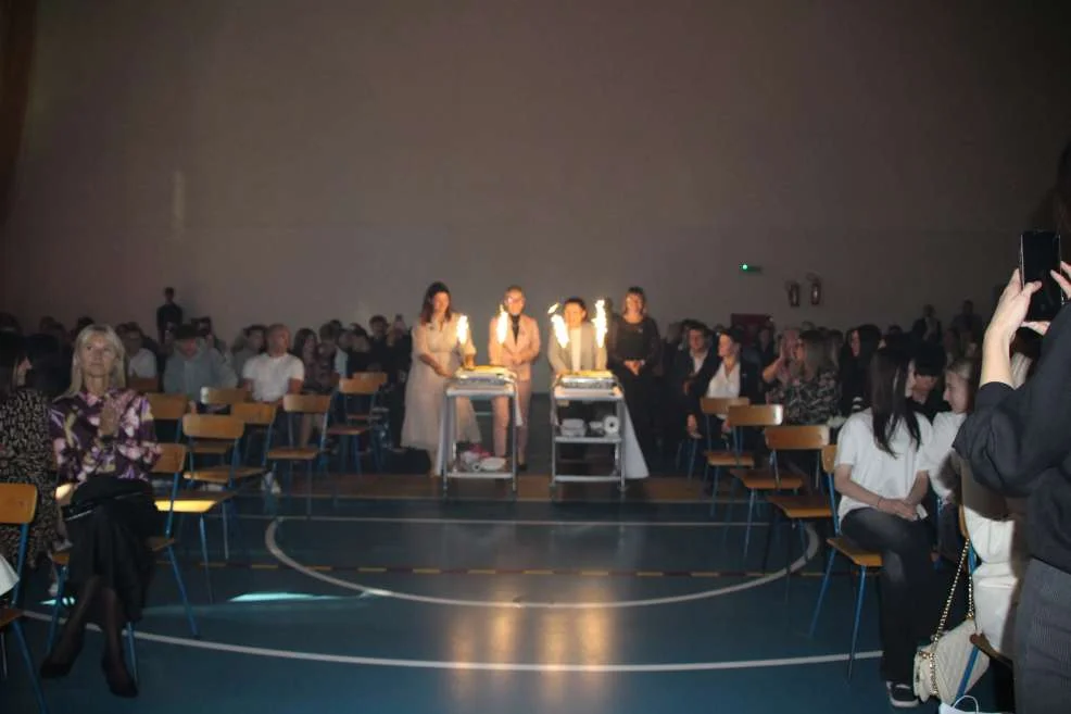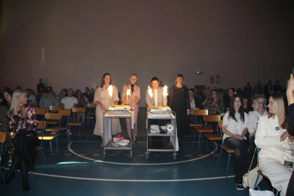 Na koniec - jak przystało na szkołę, która kształci cukierników - do sali „wjechały” dwa pokaźnych rozmiarów torty z flarami.