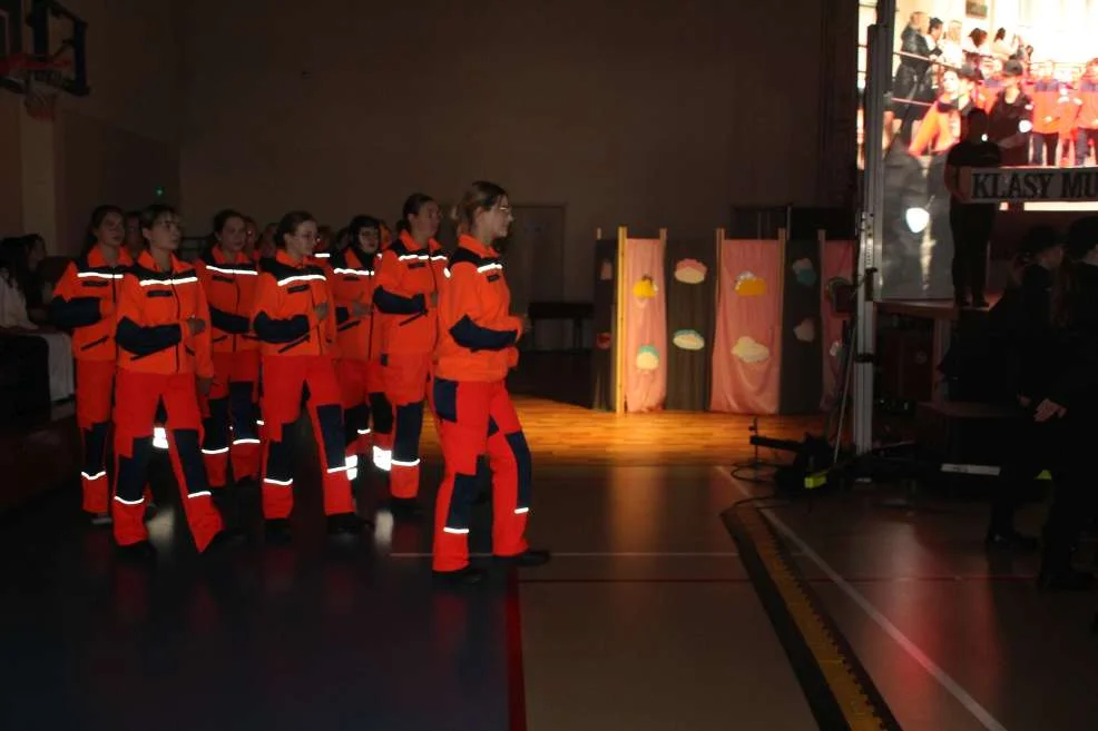 Uczniowie zaprezentowali na scenie swoje niezwykłe talenty - aktorskie, taneczne i gimnastyczne. Burze oklasków zebrała uczennica IV klasy liceum ogólnokształcącego z przysposobieniem policyjno-prawnym Maja Garsztka, która zaprezentowała układ taneczno-akrobatyczny na szarfach.
