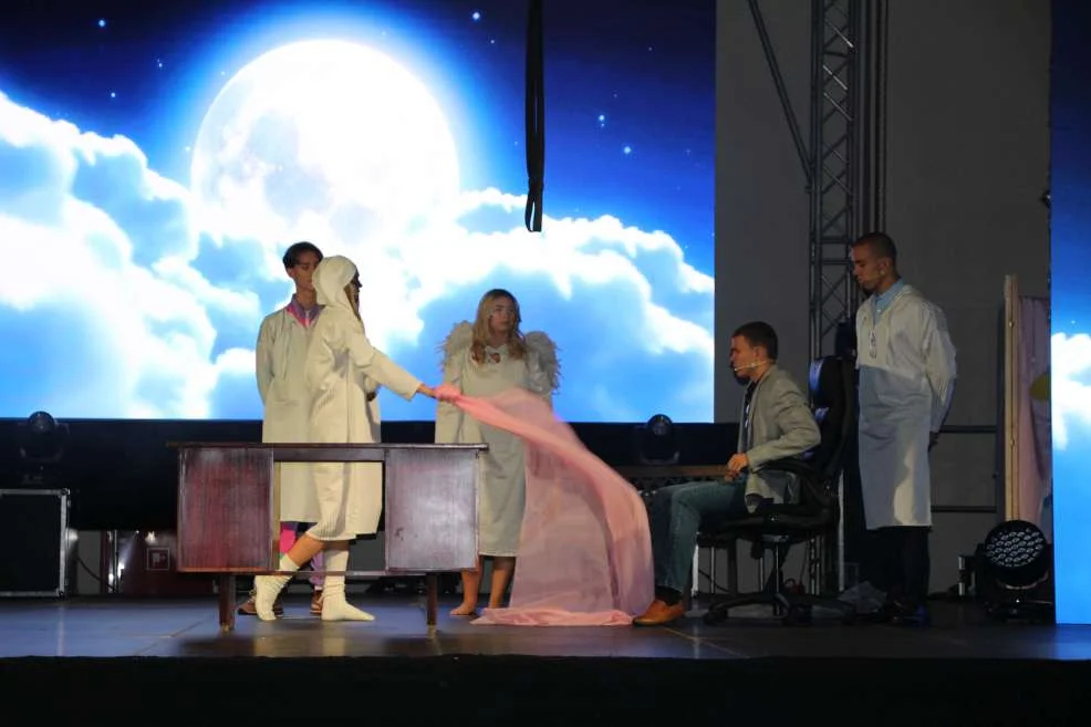 Już sama sceneria sceny z ogromnym telebimem i grą świateł, zrobiła wielkie wrażenie na uczestnikach. Ale prawdziwe emocje czekały na nich, kiedy rozpoczęło się przedstawienie, które opierało się na marzeniach sennych dyrektora ZSP nr 2 Witolda Bierły.