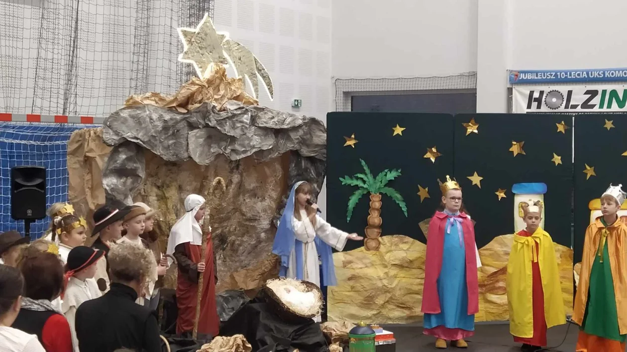 Uczniowie wprowadzili zgromadzonych w cudowny klimat Świąt Bożego Narodzenia. Przed publicznością zaprezentowały się dzieci od przedszkola do klasy trzeciej. Najmłodsi recytowali wiersze świąteczne. Przejmujące jasełka wystawiły dzieci z klas I-III. Oczywiście w przedstawieniu nie mogło zabraknąć Maryi, Józefa, aniołów, pasterzy, królów. Mali aktorzy wystąpili we wspaniałych kostiumach. Przedstawienie wprowadziło wszystkich w niezwykły klimat świąt Bożego Narodzenia. Po jasełkach wszyscy zasiedli do pięknie udekorowanych stołów, zastawionych świątecznym ciastem.