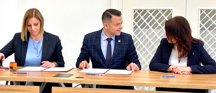 W poddpisaniu umowy uczestniczyli (od lewej): Iwona Kaźmierczak, skarbnik gminy Jarocin, Bartosz Walczak, wiceburmistrz Jarocina oraz przedstawicielki wojewody wielkopolskiego.