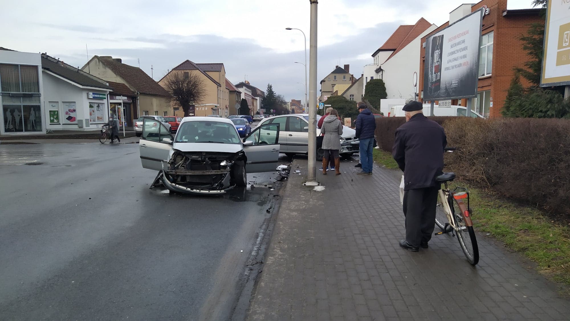 Z relacji świadków zdarzenia wynika, że starszy mężczyzna wyjeżdżający z ul. Dąbrowskiego nie ustąpił pierwszeństwa przejazdu jadącemu ul. Wrocławską. Doszło do zdarzenia dwóch aut osobowych, po czym renault scenic zatrzymało się na chodniku.