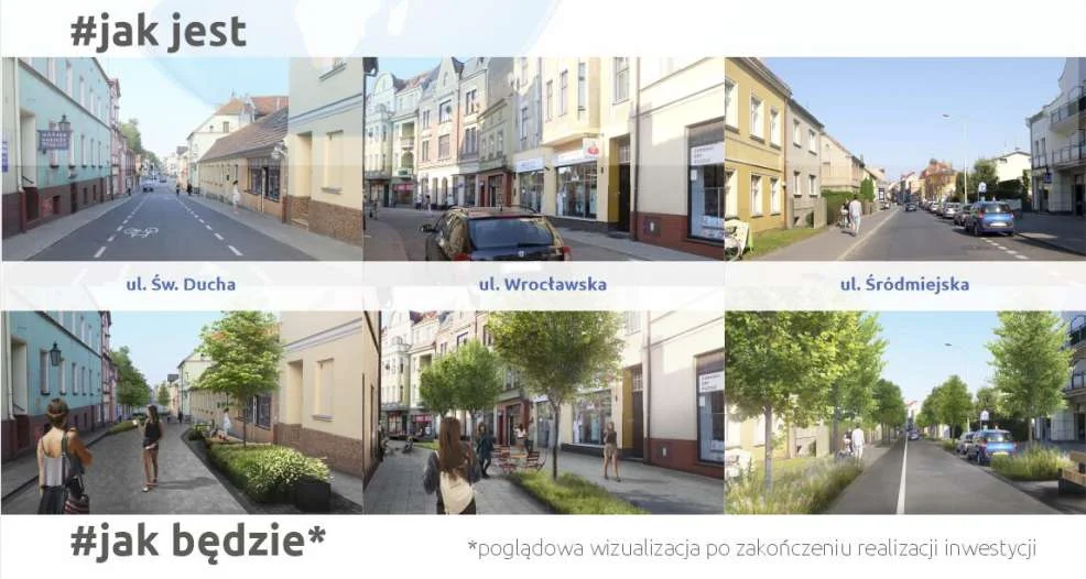 Końcowy efekt tych prac można już zaobserwować na ulicach: Kościelnej, Łąkowej, Małej, Wąskiej, Krótkiej, Wrocławskiej (na odcinku od Rynku do ul. Kilińskiego), św. Ducha (na odcinku Rynek - Rondo), Kasztanowej, Poznańskiej oraz na placu targowym i przyległych ulicach.