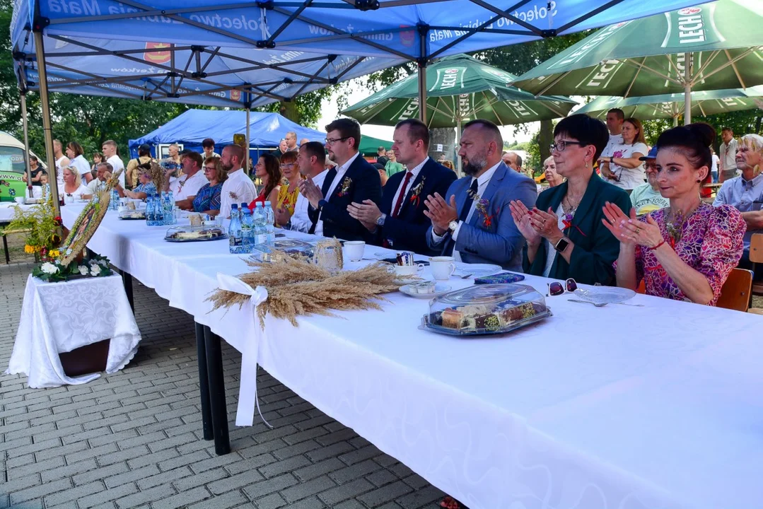 Wśród zaproszonych na święto plonów gości znaleźli się starosta jarociński Mariusz Stolecki oraz burmistrz Żerkowa Michał Surma, który to odebrał z rąk starostów - Marleny i Mirosława Antczaków, dożynkowy chleb.
