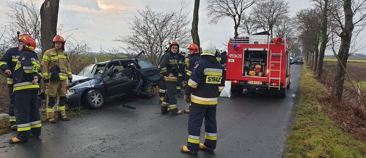 Do wypadku doszło dzisiaj około godziny 14.40 w miejscowości Wałków, w powiecie krotoszyńskim. Samochód uderzył tam w drzewo. Jedną osobę strażacy uwalniali z auta.