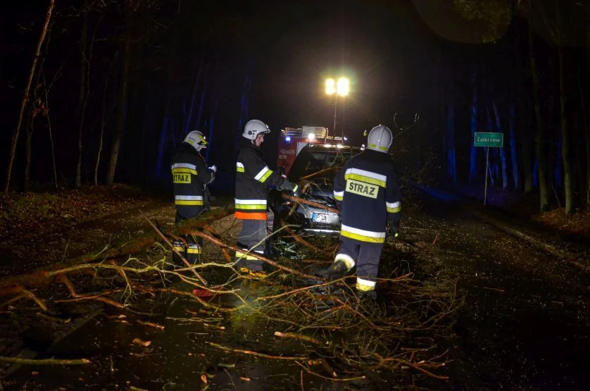 Za oknami wieje coraz silniej. Na drodze Zakrzew-Golina drzewo upadło na jezdnię przed jadący samochód.