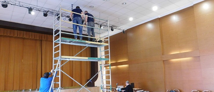 - Przygotowujemy salę do posiedzeń rady pod kątem elektronicznego głosowania i całą związaną z tym otoczką, czyli prezentacją wyników głosowania, a więc projektorem i ekranem, nagłośnieniem i transmisją w internecie - mówi Sławomir Machulski z poznańskiej firmy "Helpdesk". Przyznaje, że prace trwają stosunkowo dłużej niż w innych salach sesyjnych. - Ta jest wyjątkowa, bo wysoka, znajduje się w ośrodku kultury. Na pewno łatwiej jest to robić w mniejszych salach, kameralnych, w urzędach, typowo dedykowanych niż w adaptowanych - tłumaczy.