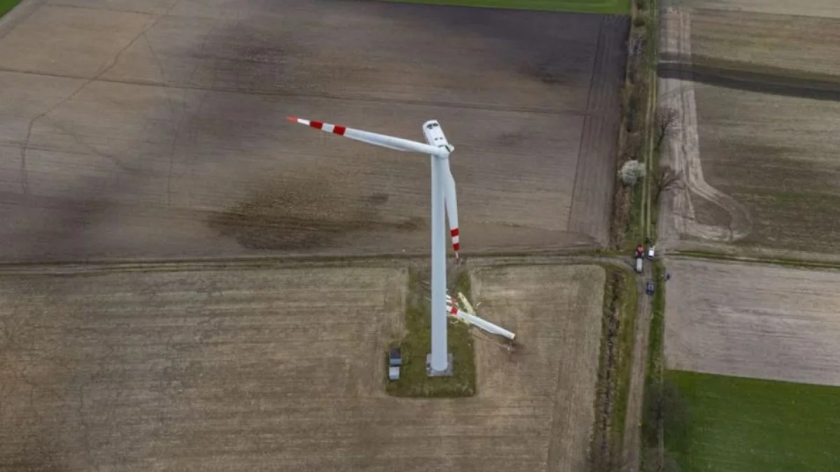 Przypomnijmy - w kwietniu 2023 roku informowaliśmy o zdarzeniu, do którego doszło na polu w Dobieszczyźnie. Od siłowni wiatrowej stojącej około pół kilometra od zabudowań urwało się jedno ze śmigieł. Na zdjęciach widać było, że duży element oderwał się od konstrukcji, upadł i roztrzaskał się na mnóstwo kawałków. Leżały też zniszczone większe części śmigła.