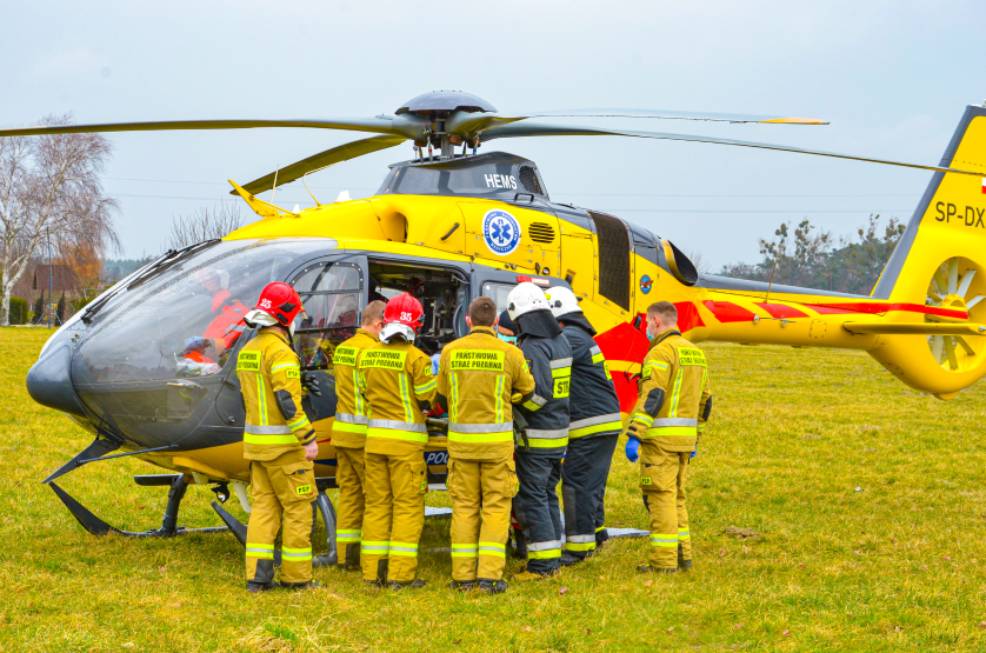 Lądowisko na czas przylotu śmigłowca zabezpieczała Straż Pożarna z Jarocina. Warto podkreślić, że strażacy już wcześniej zostali przeszkoleni z zakresu współdziałania z Lotniczym Pogotowiem Ratunkowym.