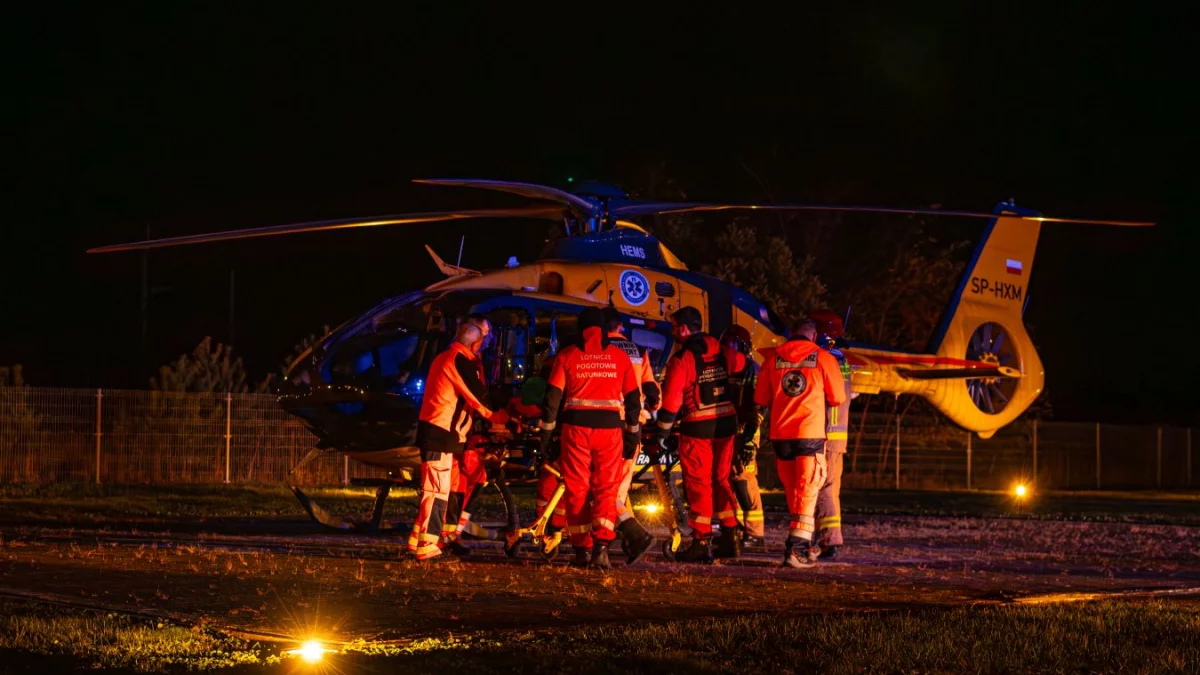 Wspólna akcja ratunkowa Zespołu Ratownictwa Medycznego, straży pożarnej i Lotniczego Pogotowia Ratunkowego. Ratownik 21 siadał na lądowisku szpitalnym.