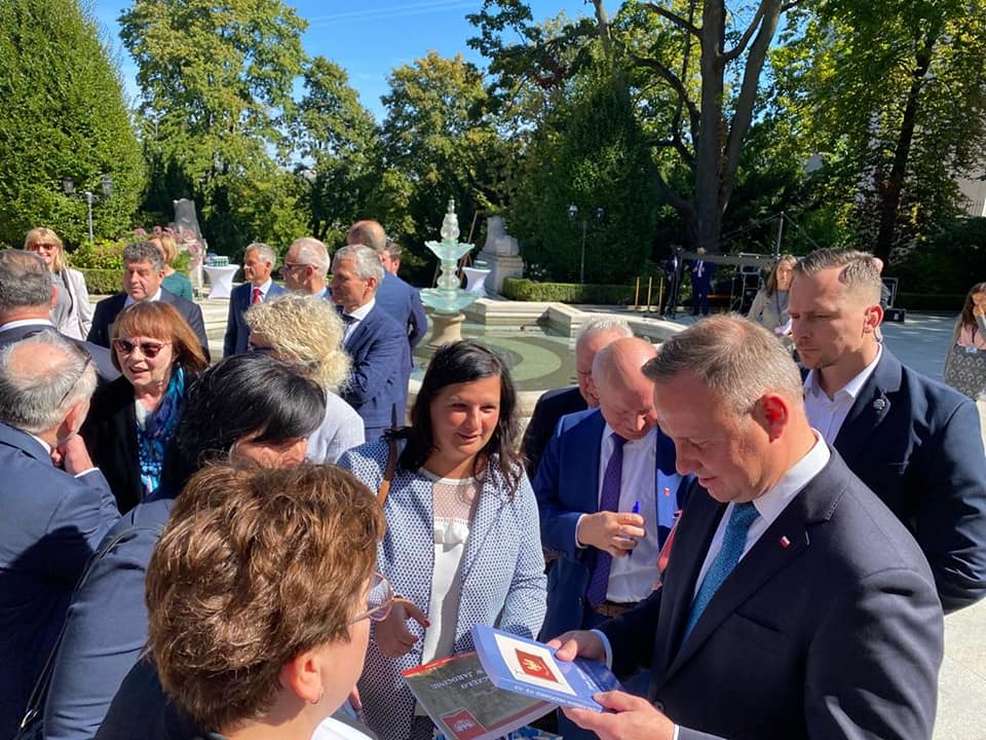 Starosta Lidia Czechak na spotkaniu z prezydentem Andrzejem Dudą. Rozmawiali o Powstaniu Wielkopolskim | Fot. Organizatorzy