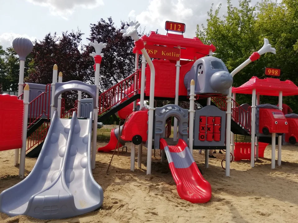 Lato i wakacje w pełni. Ten czas lubią szczególnie dzieci. Gmina Kotlin przygotowała dla nich nietuzinkowy plac zabaw o tematyce strażackiej. Jego budowę samorząd zapowiedział na początku roku. Gmina pozyskała na to zadanie środki z Urzędu Marszałkowskiego w Poznaniu środki w wysokości 80.772 tys. zł. Ogłoszone postępowanie trzeba było unieważnić. W kolejnym wpłynęły dwie oferty. Przetarg wygrała firma PPHU Szkołamillenium Piotr Kraszewski z miejscowości Zawisty Nadbużne.