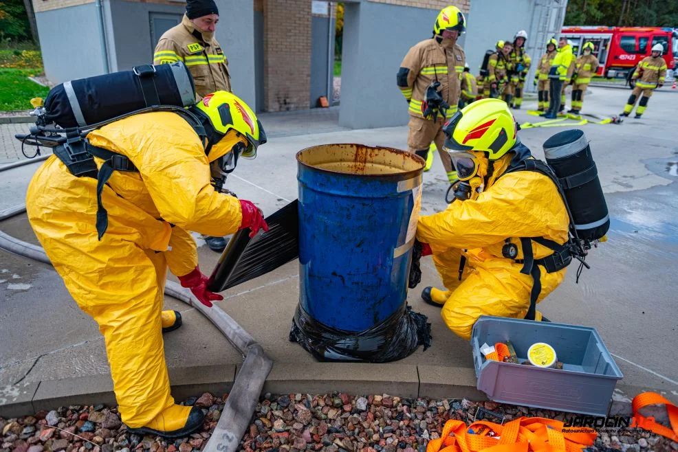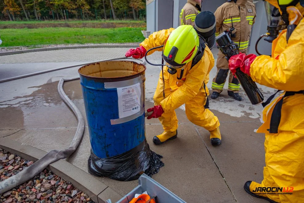 W sobotę, 18 października, strażacy OSP z całej gminy Jarocin wzięli udział w praktycznych ćwiczeniach na terenie Przedsiębiorstwa Wodociągów i Kanalizacji w Jarocinie. Ćwiczenia pozwoliły druhom sprawdzić swoje umiejętności w ekstremalnych warunkach - od wycieków niebezpiecznych chemikaliów po akcje ratunkowe na wysokościach.