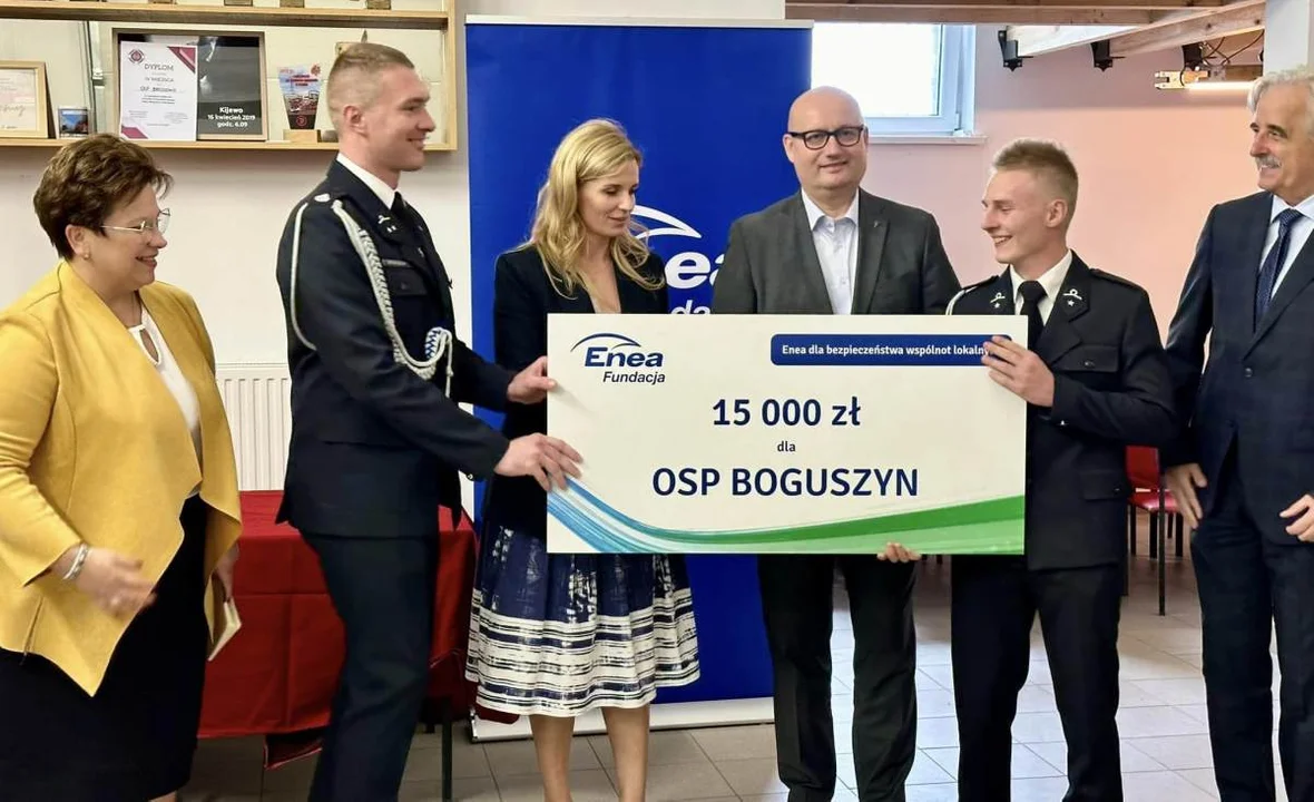 W remizie Ochotniczej Straży Pożarnej w Brodowie nastąpiło uroczyste przekazanie grantów Fundacji ENEA. Wsparcie otrzymały 3 jednostki z powiatu średzkiego: OSP Pięczkowo, OSP Brodowo oraz OSP Boguszyn oraz KGW Murzynowo Leśne. Strażacy z Boguszyna otrzymali 15.000 zł. Jednostka pieniądze przeznaczyła na zakup 5 nowych hełmów strażackich Rosenbauer Heros Titan oraz 5 par butów strażackich ELTEN CURT GTX.
