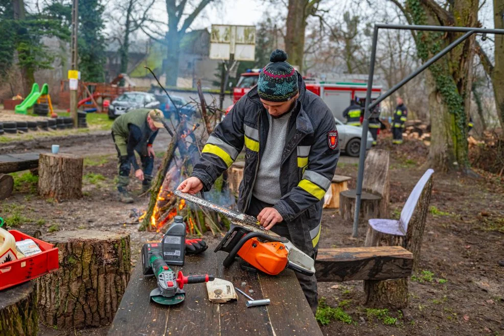 Głównym celem akcji było przygotowanie zapasów opału na zimę. Strażacy zajęli się pocięciem i porąbaniem drewna na terenie parku otaczającego placówkę. Dzięki ich zaangażowaniu dom dziecka zyskał cenny materiał grzewczy, co realnie odciąży budżet instytucji w najchłodniejszym okresie roku.