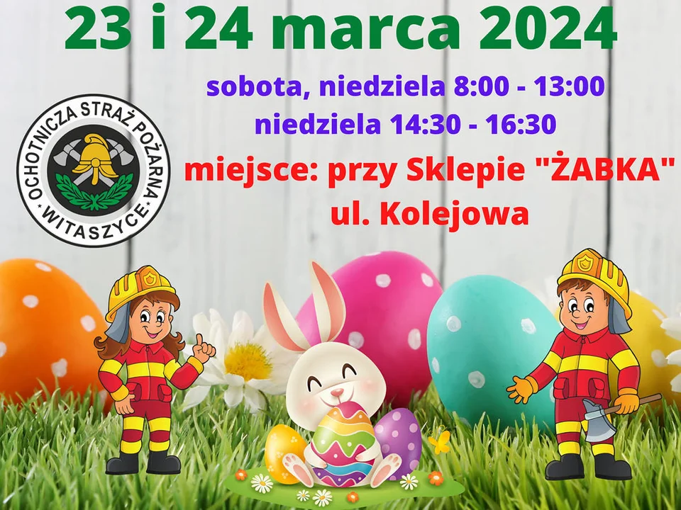 Strażacy z OSP Witaszyce nie pierwszy raz włączają się do akcji pomocy dla tego małego mieszkańca ich miejscowości. W najbliższą sobotę i niedzielę (23-24 marca) przy sklepie "Żabka" na ul. Kolejowej druhowie będą mieli stoisko z kartaki i ozdobami świątecznymi oraz palmami. Kiermasz Wielkanocny w ramach akcji "Winda dla Michałka" odbywać się będzie w godz. 8.00-13.00 (sobota), godz. 8.00-13.00 i godz. 14.30-16.30 (niedziela).