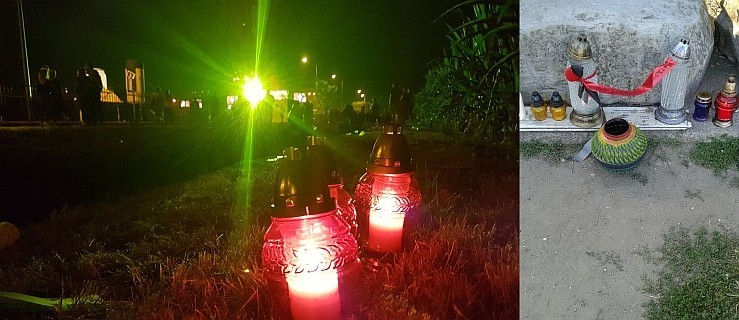 Znicze pojawiły się też na ul. Maratońskiej, tuż obok pola kukurydzy, które sąsiadowało z terenami festiwalowymi. Widoczna była również ekipa z dużym transparentem – „Rock n` Roll Rów Festiwal” – która okupowała pobocze.