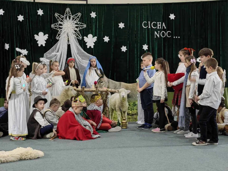 W trakcie spotkania odbyło się także kolędowanie, podczas którego wszyscy zebrani mieli możliwość wspólnego śpiewania tradycyjnych kolęd i piosenek świątecznych. Ponadto, uczniowie przygotowali jasełka, które z dużym zaangażowaniem zaprezentowali przed publicznością, dodając wszystkiemu świątecznego klimatu. Niezwykłym punktem programu był minirecital artysty, znanego m.in. z Listy Przebojów Programu 3, Janka Samołyka.