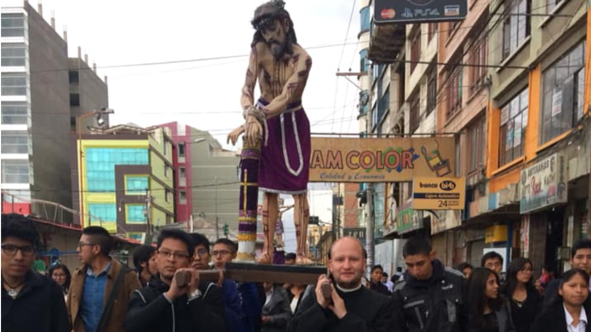 Wielki Piątek w Andach, na wysokości ponad 4.000 metrów n.p.m., jest obchodzony z ogromną odpowiedzialnością i oddaniem, jest to również dzień wolny od pracy. Zaczyna się bardzo wcześnie. Już o godzinie 5.00 rano we wszystkich parafiach rozpoczyna się Droga Krzyżowa, która jest bardzo barwna. Wielu młodych ludzi przebiera się w stroje i przestawiają sceny Stacji Drogi Krzyżowej, ponieważ w Boliwii jest bardzo duży szacunek do śmierci. Można nawet zaobserwować, że jest to jeden z najbardziej i najlepiej przygotowanych dni w całym okresie Wielkiego Postu i Zmartwychwstania. To również dzień postu i pokuty. W południe po raz drugi spotykamy się w kościele na konferencji związanej z bólem, który przeżywała Matka Boża pod Krzyżem, po tej celebracji udajemy się na obiad - oczywiście postny. Typowym daniem jest biały ser z makaronem. O godzinie 15.00 po raz kolejny udajemy się na koronkę do Bożego Miłosierdzia i po koronce jest od razu prowadzona liturgia Męki Pańskiej i Adoracja Krzyża Świętego.
