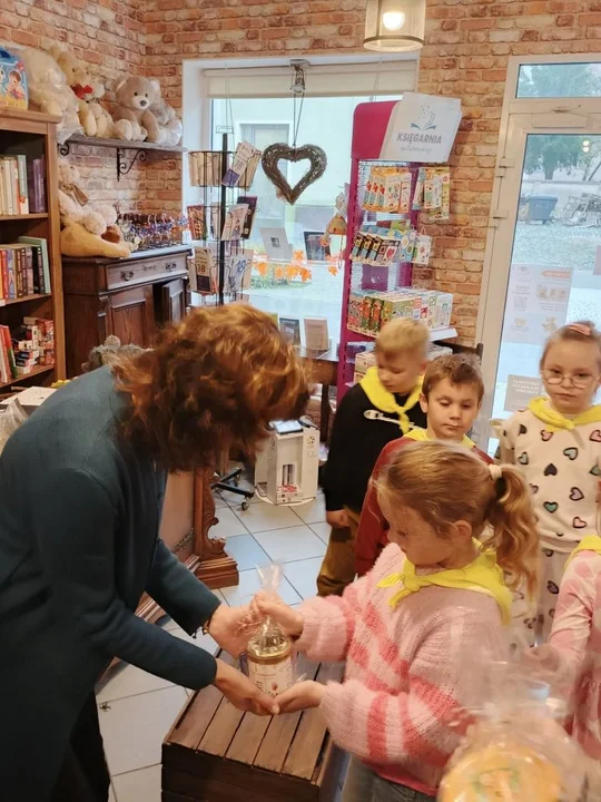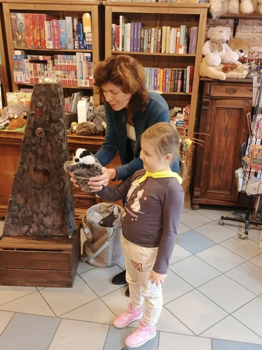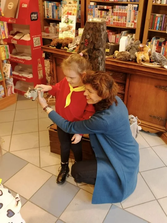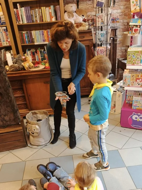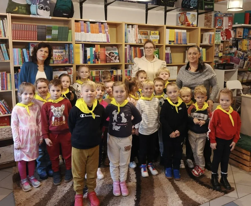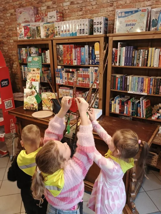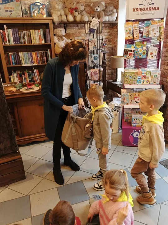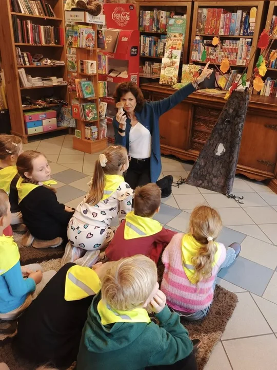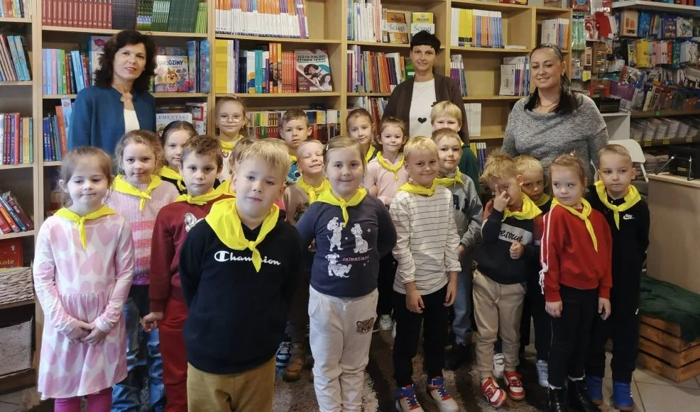 Po leśnych odkryciach przyszedł czas na kolejną atrakcję - wycieczkę do lokalnej księgarni na ul. Paderewskiego w Jarocinie. Tam mali miłośnicy książek uczestniczyli w warsztatach „Drzewo i jego mieszkańcy” prowadzonych przez pisarkę i ilustratorkę Reginę Gruchalską. Dzieci poznawały tajemnice lasu, rozpoznawały gatunki drzew, ubierały jesienne drzewko i uczyły się, jak drzewa oczyszczają powietrze, regulują klimat, dostarczają drewna i leków oraz stanowią schronienie dla zwierząt i roślin.Spotkanie zakończyło się wspólnym zdjęciem i podziękowaniami, a księgarnia po raz kolejny pokazała, że książki i edukacja ekologiczna mogą iść w parze, inspirując najmłodszych do odkrywania świata przyrody z ciekawością i radością.