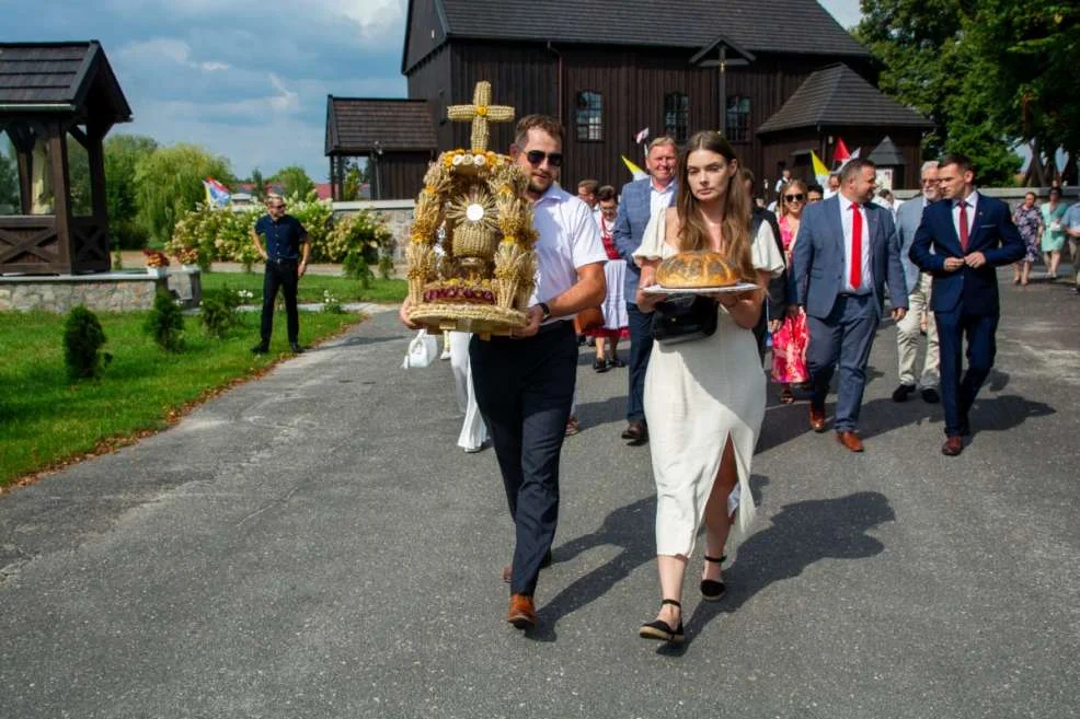 Dożynkowy korowód, na czele ze starostami dożynek - Elwirą Mikołajczak i Bartoszem Kardachem, którzy nieśli tradycyjny wieniec upleciony z kłosów tegorocznego zboża, prowadził uczestników na miejsce uroczystości.