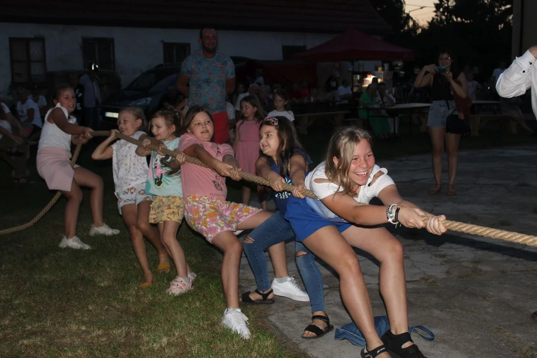 W trakcie festynu można było wziąć udział w kilku konkursach. Był slalom z pyrą, rzut pyrą do celu oraz rodzinna zabawa w "sadzenie i zbieranie pyrek". Dorośli, dzieci, panowie i panie mieli okazję sprawdzić się w obieraniu ziemniaków na czas. Zorganizowano również rzut beretem i kaloszem sołtyski, a na koniec drużynowe zawody w przeciąganiu liny. Walka byla zażarta, ale cały czas w atmosferze dobrej zabawy.
