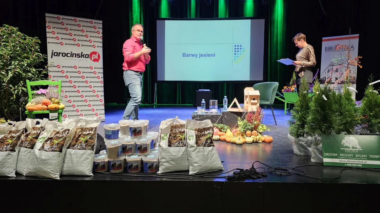 Punktualnie o godzinie 17.00 na dużej scenie JOK-u przed zgromadzoną publicznością ekspert podzielił się swoją wiedzą na temat roślin i ich uprawy, które właśnie teraz jesienią pięknie prezentują się w ogrodach. Zwrócił szczególną uwagę na aspekty wizualne roślin oraz na wykorzystanie ich np. w kuchni. Z ogromnym poczuciem humoru, co bardzo podobało się zgromadzonym na sali ogrodnikom, dziennikarz opowiadał o drzewach, krzewach, bylinach i zachęcał do sadzenia poszczególnych gatunków i odmian w swoich ogrodach. W trakcie prezentacji i tuż po każdy, kto borykał się z ogrodniczym problemem, mógł zwrócić się do eksperta i poprosić o poradę.