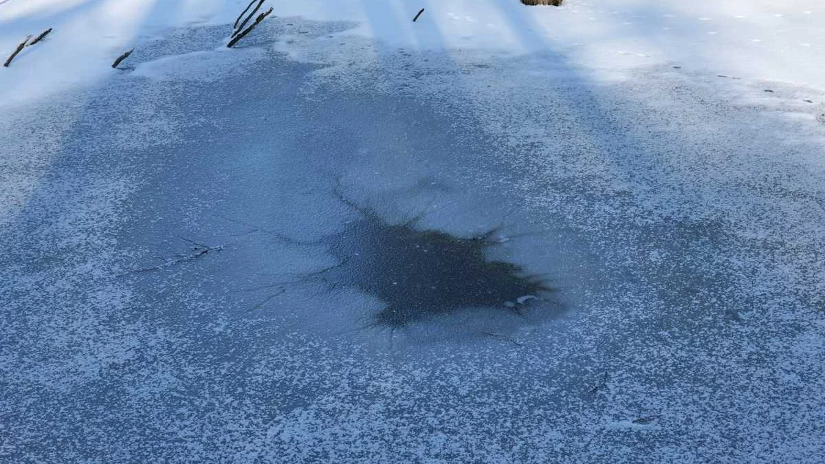 Biały puch zalegający na pokrywie lodowej znacznie utrudnia ocenę grubości lodu i nie widać pod nim pęknięć. Brak śniegu nie oznacza jednak, że zamarznięty staw czy inny zbiornik wodny jest bezpieczny. Najgrubsza warstwa lodu znajduje się przy brzegu. Im dalej od niego, tym warstwa lodu staje się cieńsza i bardziej łamliwa i wyższe zagrożenie, że taki lód pod człowiekiem się załamie - informuje asp. sztab. Agnieszka Zaworska z KPP w Jarocinie.