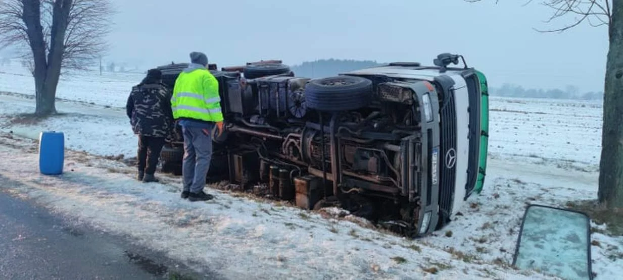 W Cielczy ciężarówka zjeżdżając z górki wpadła do rowu. Pojazdem podróżowały dwie osoby. Na miejsce wezwano Zespół Rarownictwa Medycznego. Ratownicy jednemu mężczyźnie udzielili doraźniej pomocy medycznej. Nie była konieczna hospitalizacja.