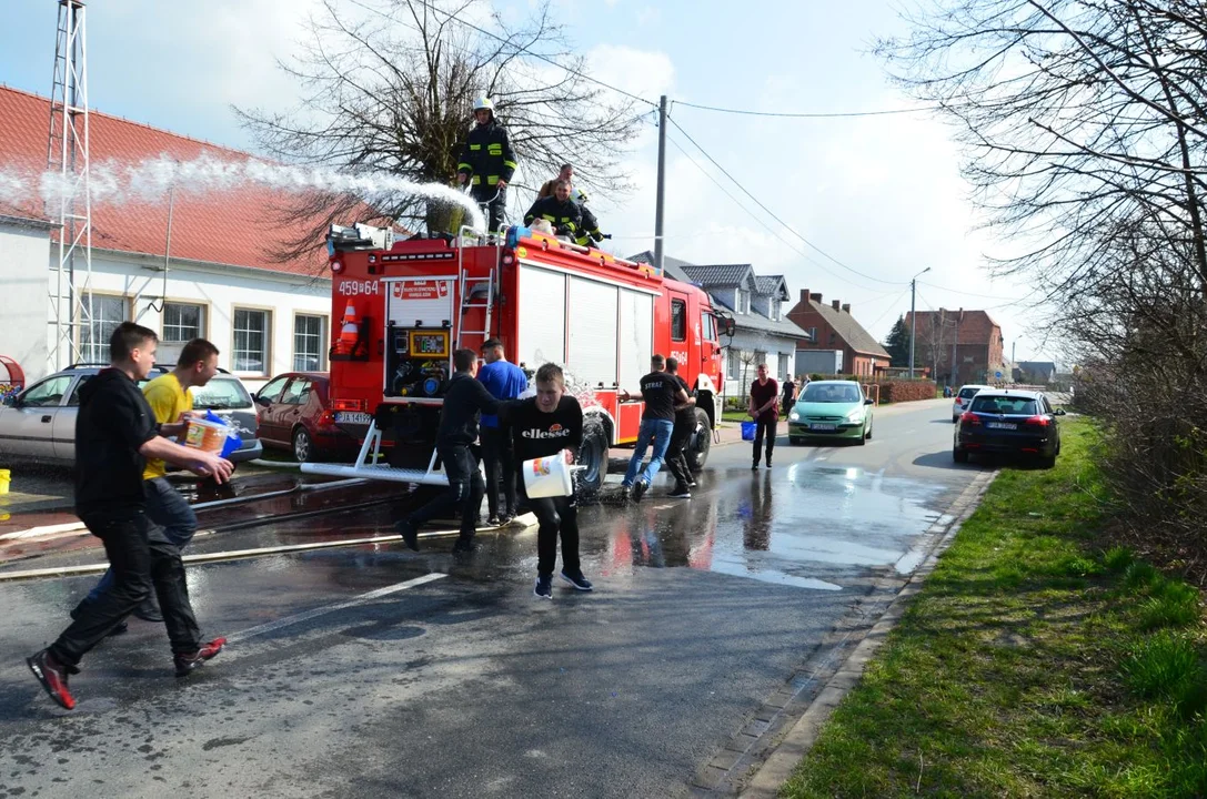Strażacy wozem bojowym przejechali przez wioskę i polewali mieszkańców. Ludzie uzbrojeni w sikawki, węże ogrodowe, wodne pistolety oraz pełne wiadra wody nie pozostali im dłużni. Zabawa była przednia.