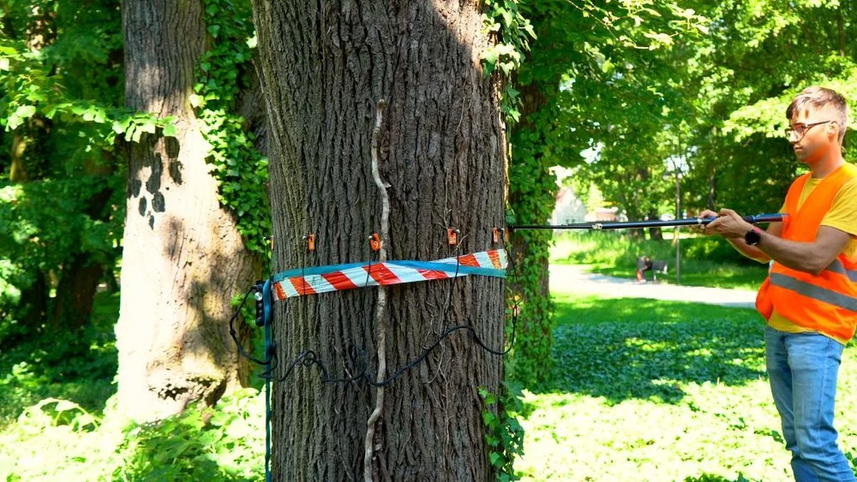 - Musimy przyjrzeć się koronom i pniom, przeanalizować czy nie ma owocników grzybów, żerowisk owadów, czy widocznych pęknięć - tłumaczy dr inż. Krzysztof Jankowski z Pracowni Przyrodniczej "Sosenka", która wykonuje badania. - Dopiero po zebraniu wyników badania tomograficznego, badań obciążeniowych oraz oceny wizualnej, będą podane zalecenia dla każdego drzewa - dotyczące np. pielęgnacji czy montażu wiązań.
