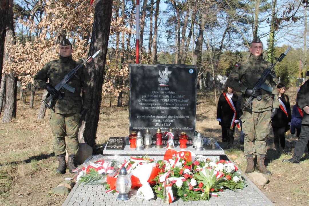 W Jarocinie uroczystość z okazji Narodowego Dnia Pamięci Żołnierzy Wyklętych zorganizowana jest co roku przez władze powiatowe. Odbywa się w miejscu, gdzie w 1946 roku funkcjonariusze Urzędu Bezpieczeństwa zamordowali członków podziemia antykomunistycznego: ppor. Józefa Rosadę pseudonim „Sokół” i kpr. Stanisława Pawlaka pseudonim „Sokół”. Pomnik przy al. Niepodległości, upamiętniający tych dwóch Żołnierzy Wyklętych, a także członków organizacji niepodległościowych „Skrusz Kajdany” i „Biała Róża”, które działały w Jarocinie i na terenie powiatu jarocińskiego po II wojnie światowej, został odsłonięty w 2018 r. z inicjatywy Stowarzyszenia "Pamięć". Wcześniej we tym miejscu znajdowała się jedynie kapliczka na drzewie, natomiast kwiaty składano pod tablicą znajdującą się na budynku dawnej Szkoły Podstawowej nr 1 w Jarocinie. Pomnik upamiętnia miejsce egzekucji, a członkowie konspiracyjnej organizacji spoczywają we wspólnym grobie na cmentarzu parafialnym.