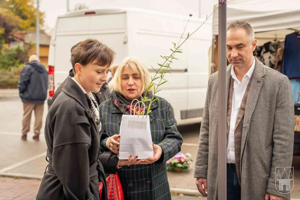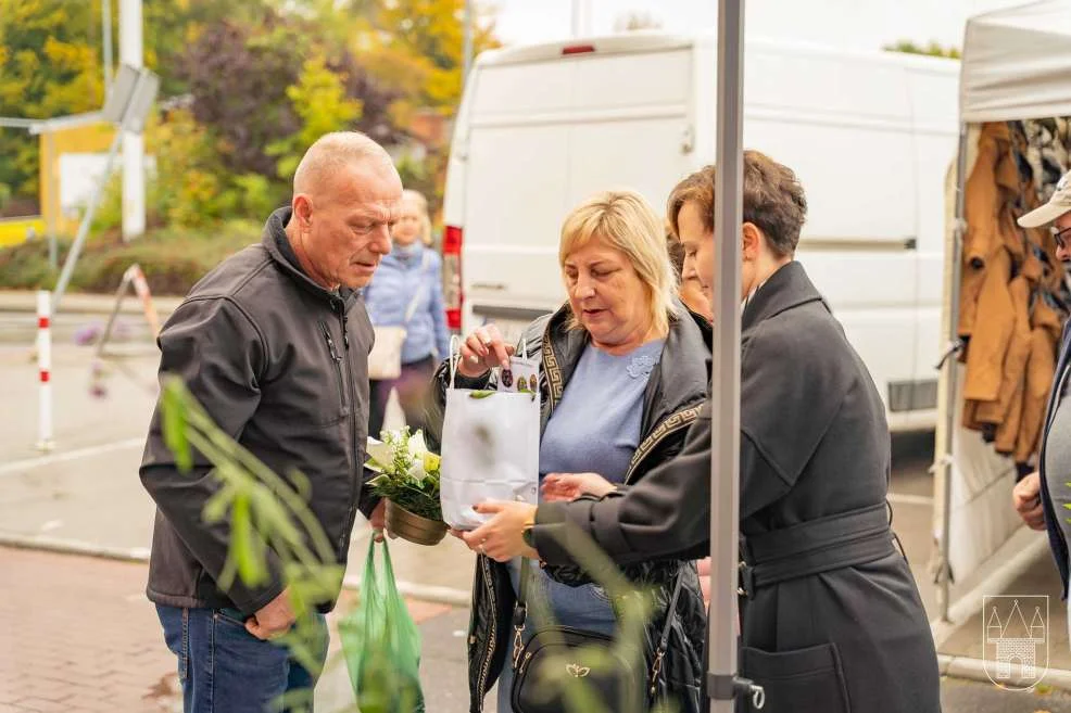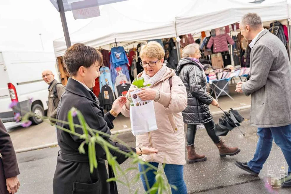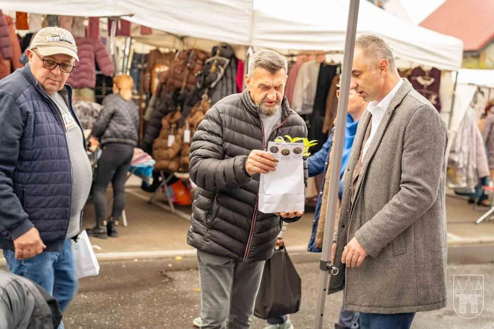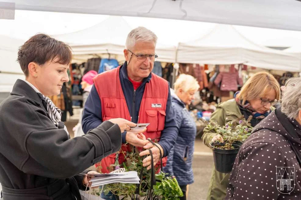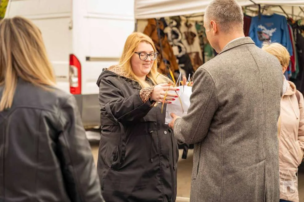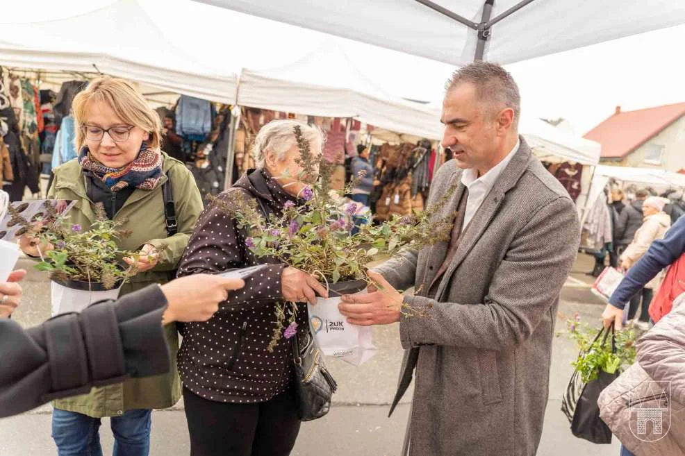 Prezes i burmistrz rozdawali rośliny na jarocińskim targowisku