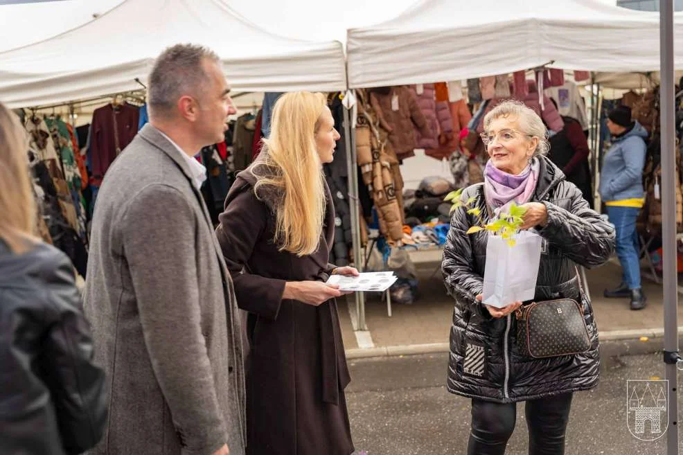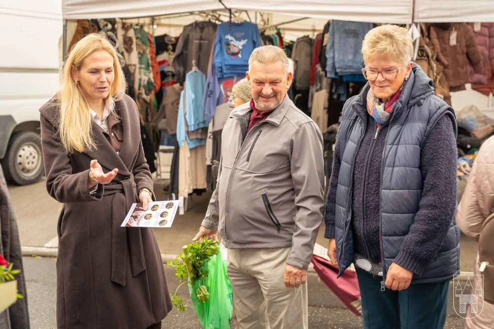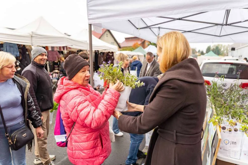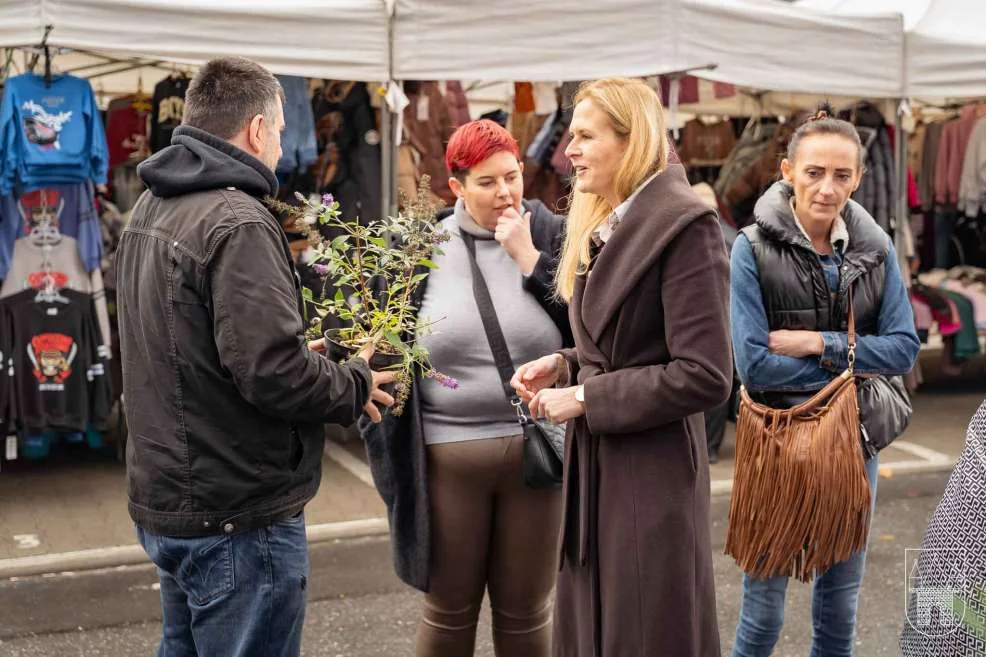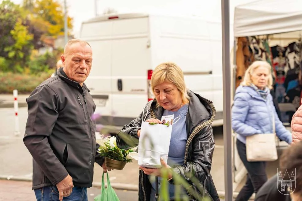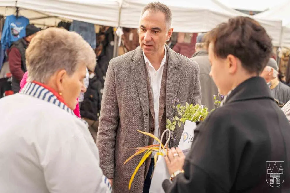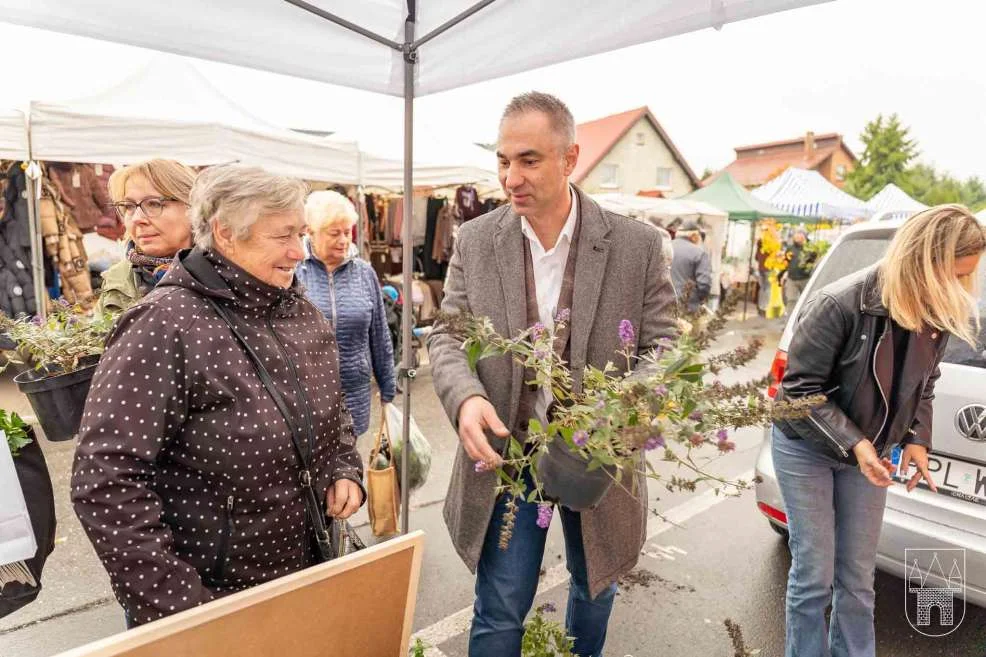 Prezes i burmistrz rozdawali rośliny na jarocińskim targowisku