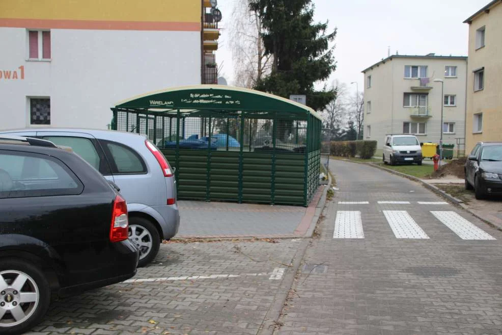 Wiata śmietnikowa na os. 1000-lecia jest za blisko jezdni i zasłania przejście dla pieszych. Kierowcy i piesi uważają, że jest niebezpiecznie.