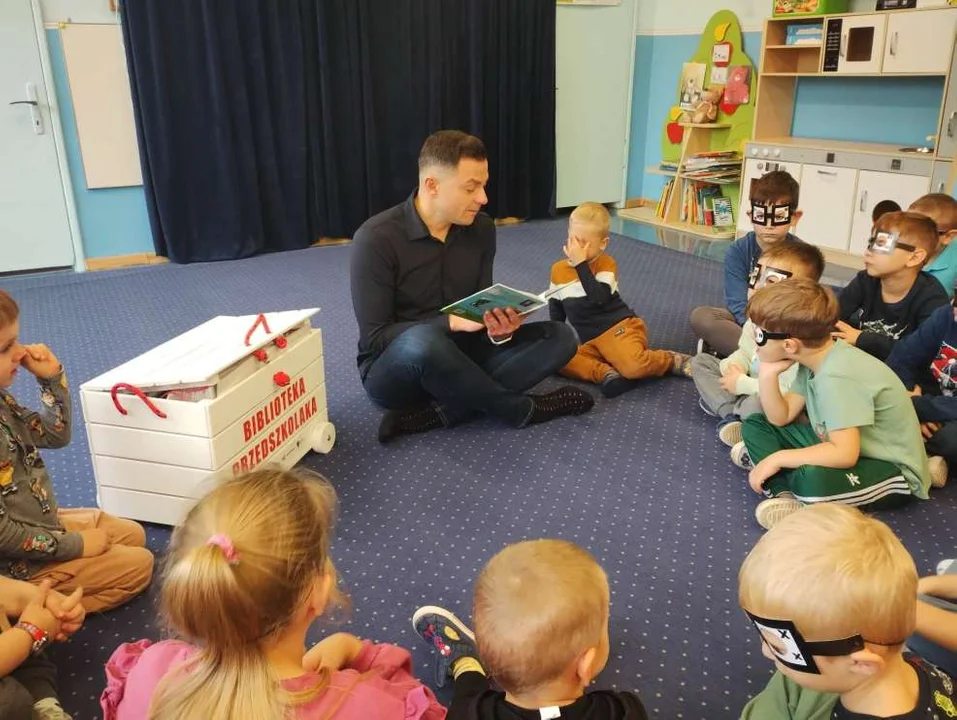 Wiceburmistrz Jarocina czytał dzieciom bajkę i odpowiadał na pytania