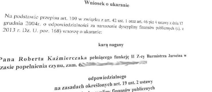 Regionalna Komisja Orzekająca w Sprawach o Naruszenie Dyscypliny Finansów Publicznych przy Regionalnej Izbie Obrachunkowej w Poznaniu chce ukarania wiceburmistrza Jarocina Roberta Kaźmierczaka.