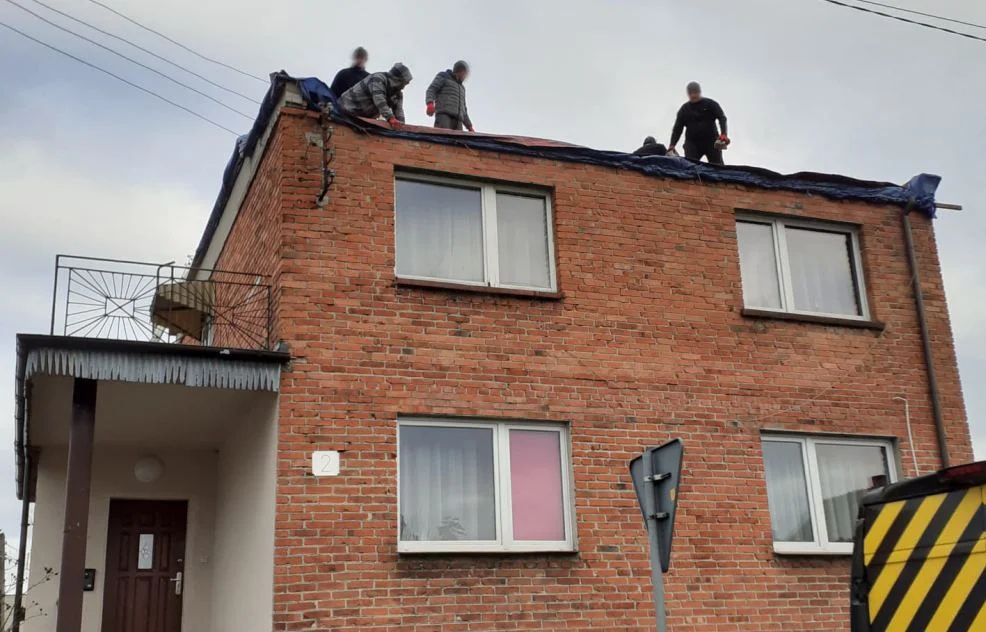 W nocy 17.02.2022 r. silny wiatr uszkodził dach budynku mieszkalnego w Nowym Mieście nad Wartą. Mieszka w nim rodzina z trójką dzieci. Pomieszczenia na górze budynku są wyłączone z użytku. Dach ich domu został zabezpieczony przez strażaków ochotników plandeką ochronną, która przy obfitych opadach i silnych wiatrach nie gwarantuje mieszkańcom pełnego bezpieczeństwa. Należy jak najszybciej naprawić dach, by nie dochodziło do dalszych zniszczeń.