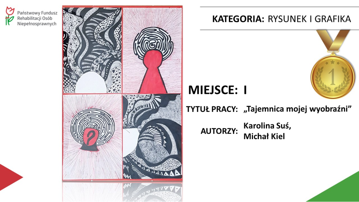 W kategorii rysunek i grafika nagrodę otrzymali Karolina Suś i Michał Kiela z ŚDS w Chromcu. Pod opieką terapeutki Anny Matuszak wykonali pracę pt. „Tajemnica mojej wyobraźni”. Grafika zakwalifikowała się do konkursu na etapie ogólnopolskim.