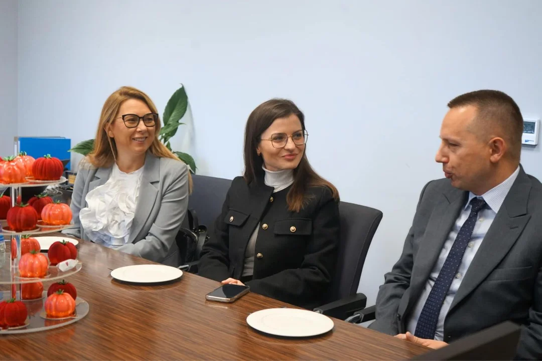 Wójt Kotlina planuje rozbudowę domu kultury. Wojewodę w Urzędzie Gminy Kotlin poczęstowano ciastkami w kształcie pomidorów.