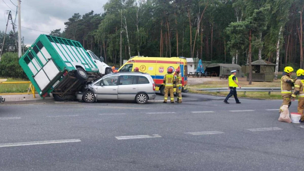 Do groźnie wyglądającego wypadku doszło na DK11 na odcinku pomiędzy Kotlinem a Wyszkami. Na skrzyżowaniu niedaleko miejsca, w którym sprzedawana jest grochówka, zderzyły się samochód osobowy z dostawczakiem.