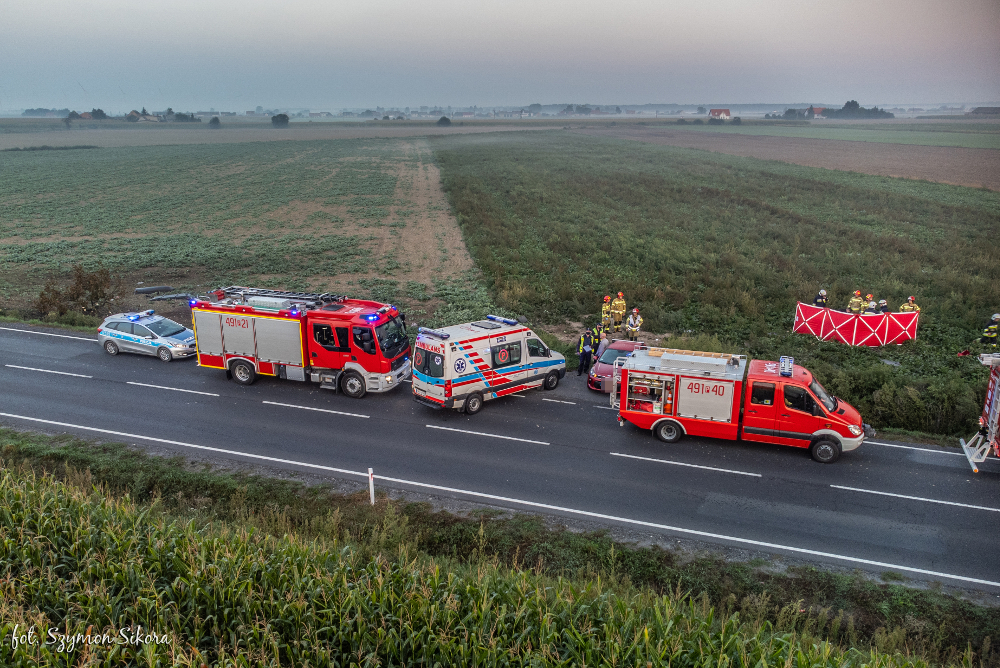 W miejscowości Orlinka (gm. Koźmin Wlkp) osoba przejeżdżająca drogą krajową nr 15 zauważyła leżące w polu auto. Powiadomiła służby ratunkowe.