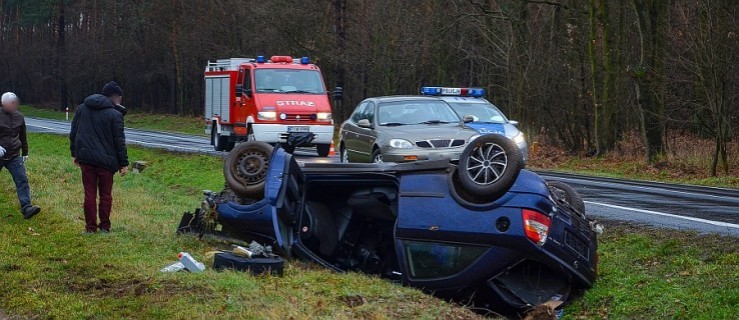 Z pierwszych informacji wynika, że na ostrym łuku drogi, kierujący autem osobowym wypadł z jezdni. Pojazd dachował.