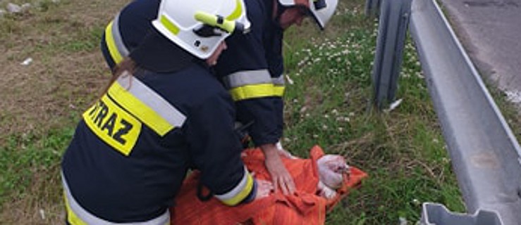 Ptak najprawdopodobniej wypadł z klatki podczas transportu. W akcji uczestniczyli strażacy z OSP Mieszków.
