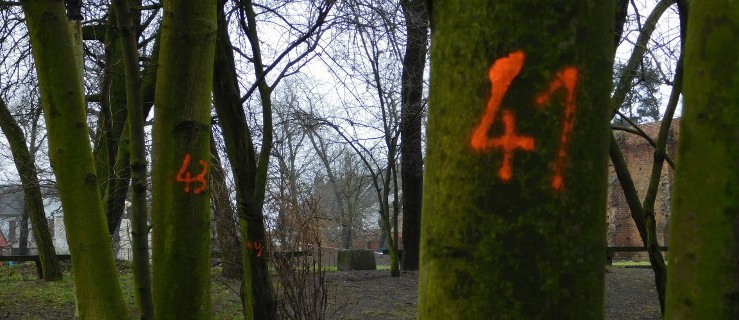 Planowane w tym roku do usunięcia drzewa zostały oznaczone pomarańczowymi numerami. Zielone cyfry wskazują te, które są przewidziane do pielęgnacji - przycięcia i uformowania koron.