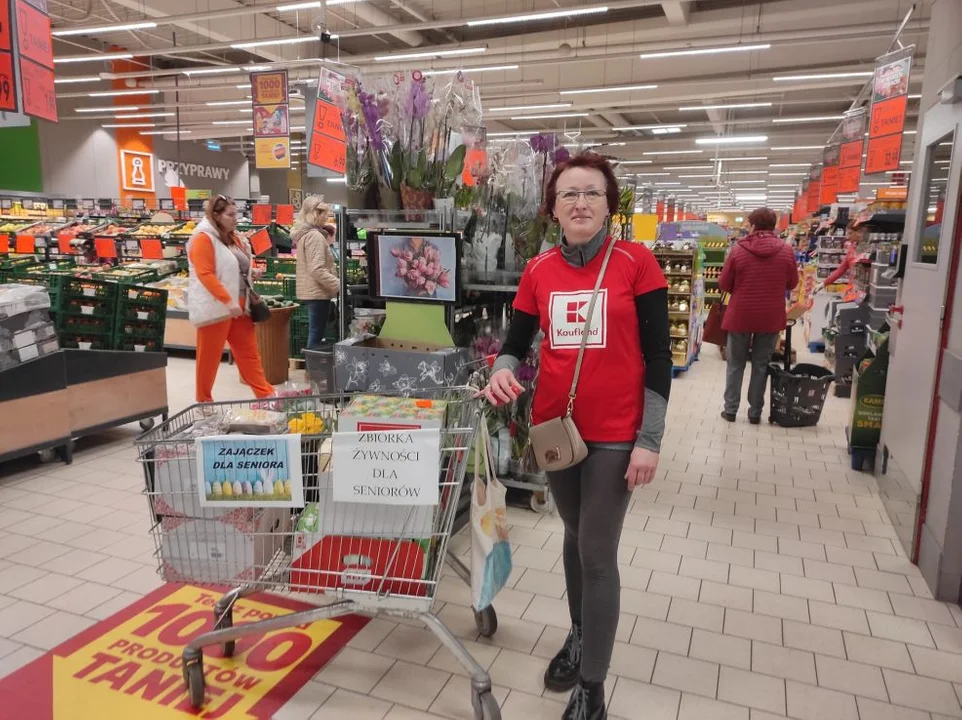Przy wejściu do sklepu będzie stał wolontariusz informujący o akcji. Będzie też proponował podstawowe produkty spożywcze, które będziecie można od razu zabrać do koszyka by wesprzeć "Zajączka dla seniora".